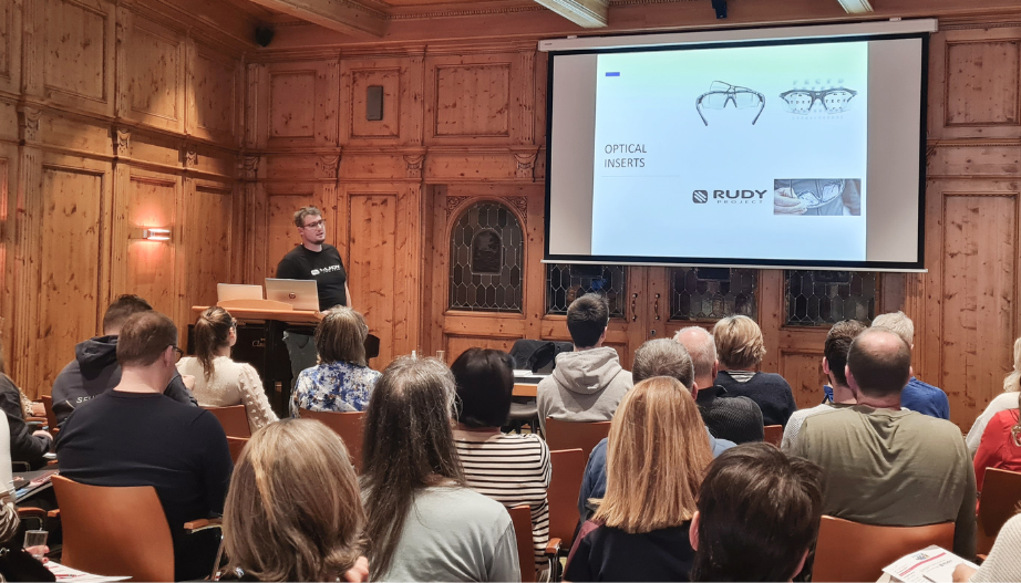 Bereits zum zweiten Mal unterstützte der italienische Sportbrillenhersteller Rudy Project als Sponsor das Brillen-Profi Ski-Opening und war mit Matthias Wolter (Gebietsvertriebsmanager Deutschland Nord/West) und Michaela Bock (Area Sales Manager für Deutschland und Österreich) auch personell vertreten. Neben einer Unternehmenspräsentation gab es für die teilnehmenden Brillen-Profis auch eine Geschenktüte u.a. gefüllt mit einem kleinen Weihnachtsgruß sowie einer Sportbrille.
