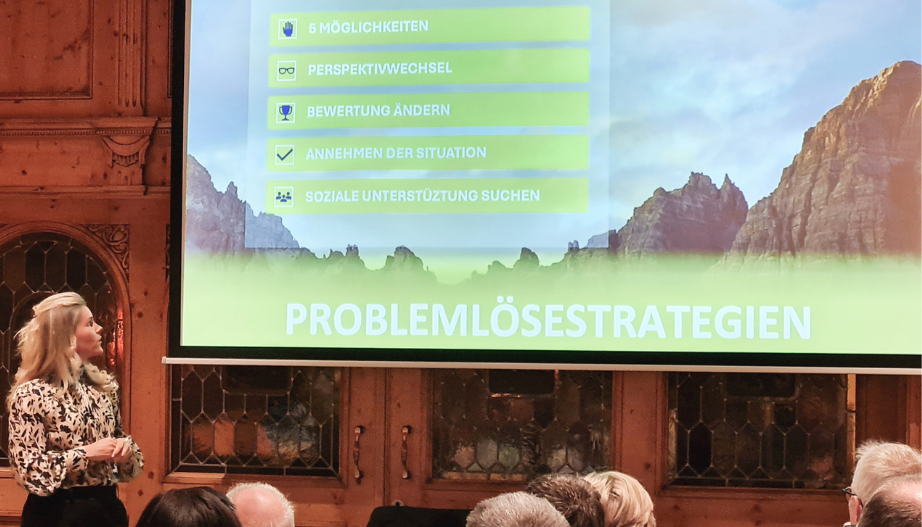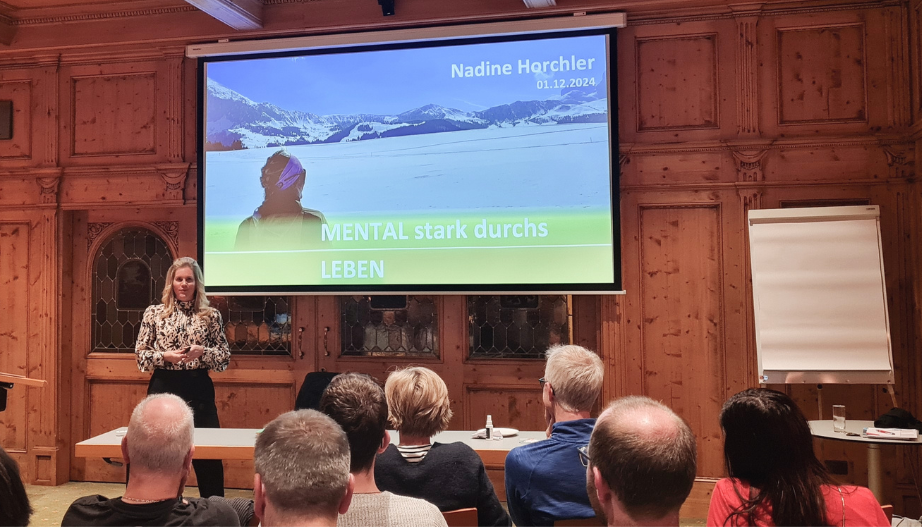 Niederlagen und Krisen begleiten einen unweigerlich durch das Leben. Wie Rückschläge durchaus positiv umgemünzt werden können, erklärt die ehemalige Profi-Biathletin Nadine Horchler den anwesenden Sportoptik-Experten und unterfütterte theoretische Ansätze mit zahlreichen Anekdoten aus ihrer aktiven Zeit als Leistungssportlerin. Wie der Umgang mit Stress, Ängsten und Zweifeln gelingen kann sowie gesteckte Ziele erreicht werden können, zeigte Nadine Horchler auch ganz praktisch anhand zweier Übungen, die einfach in den Alltag integriert werden können. Für sie ganz selbstverständlich, begleitete Nadine Horchler die Veranstaltung über die ganze Zeit und war auch an den Abendessen sowie auf der Skipiste mit dabei.