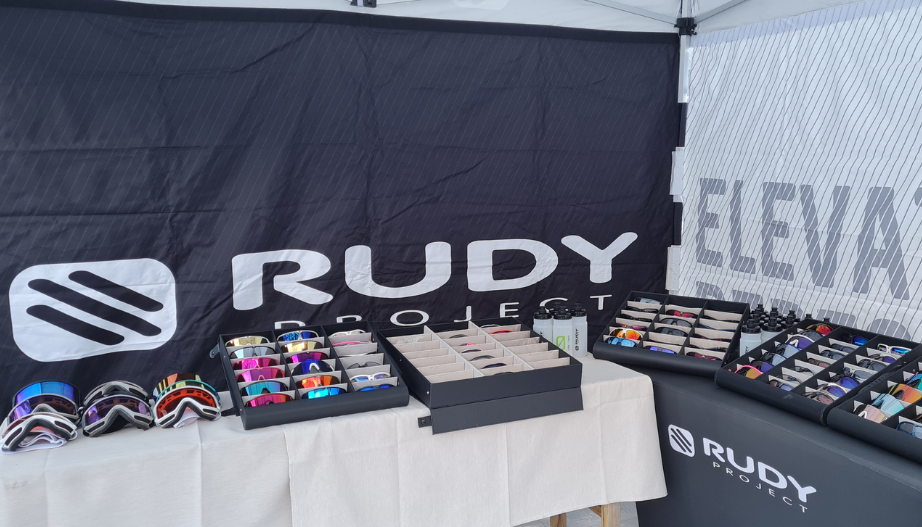 Es sollte aber nicht nur über die Sportbrillen von Rudy Project gesprochen, sondern diese vor allem ausgiebig getestet werden. Dazu gab es am ersten Veranstaltungstag an der Bergstation "Hohe Mut Bahn" ein Zelt mit kleinem Messestand sowie heißen Getränken, wo die neuesten Sport- und Skibrillen ausgeliehen und auf bzw. abseits der Piste ausprobiert werden konnten.