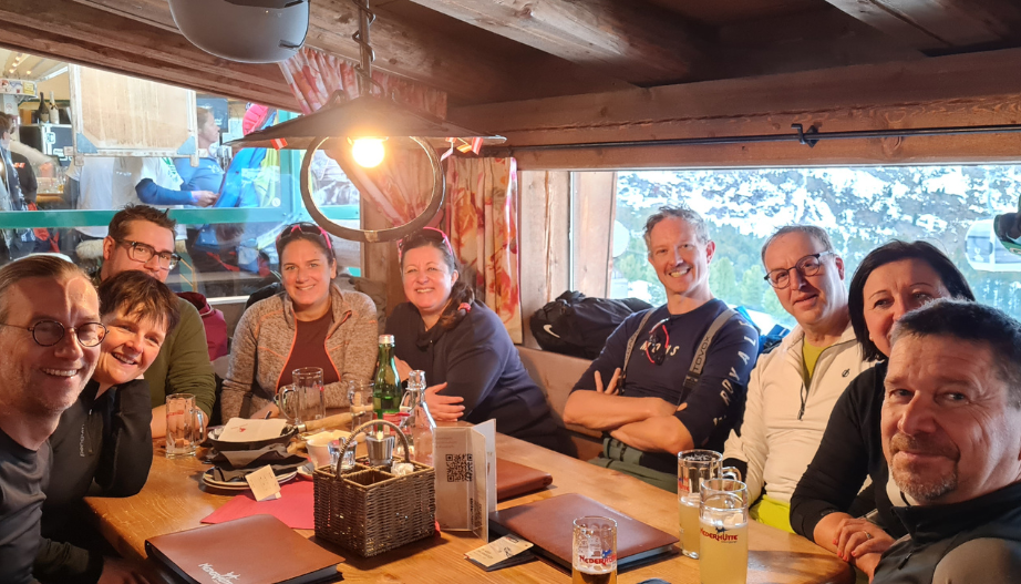 Wetterbedingt musste die Ski- und Sportbrillenpräsentation von Rudy Project am zweiten Tag zwar kurzerhand in geschlossene Räume umgezogen werden. Das tat der Stimmung jedoch keinen Abbruch — egal ob tagsüber auf der Piste oder abends beim Après-Ski auf der urigen Nederhüttn. Der "Einkehrschwung" war wie immer mit sehr viel Spaß, guter Laune und fetziger Musik verbunden, so dass auch die Skistiefel niemanden davon abhielten, ausgiebig zu tanzen.